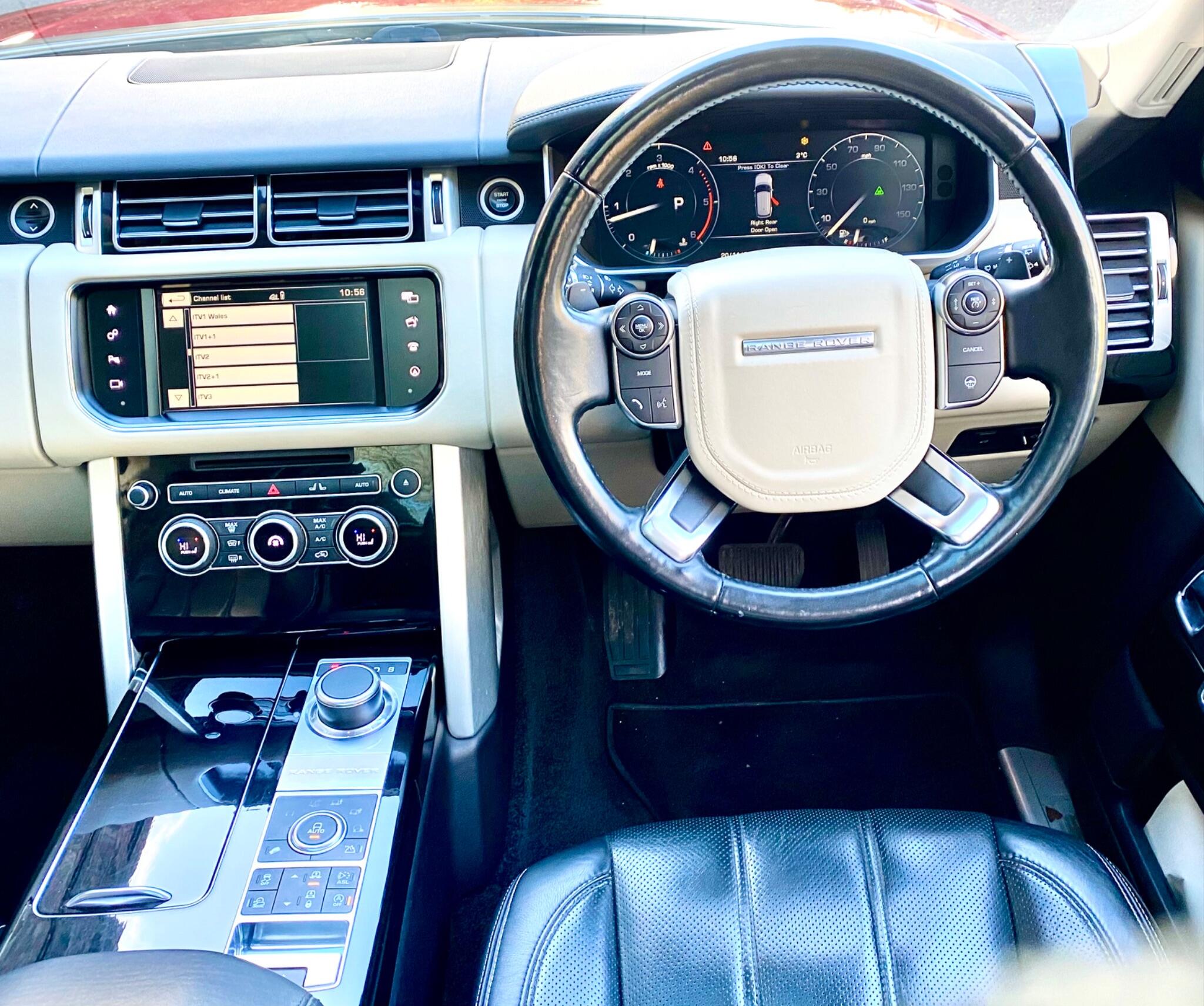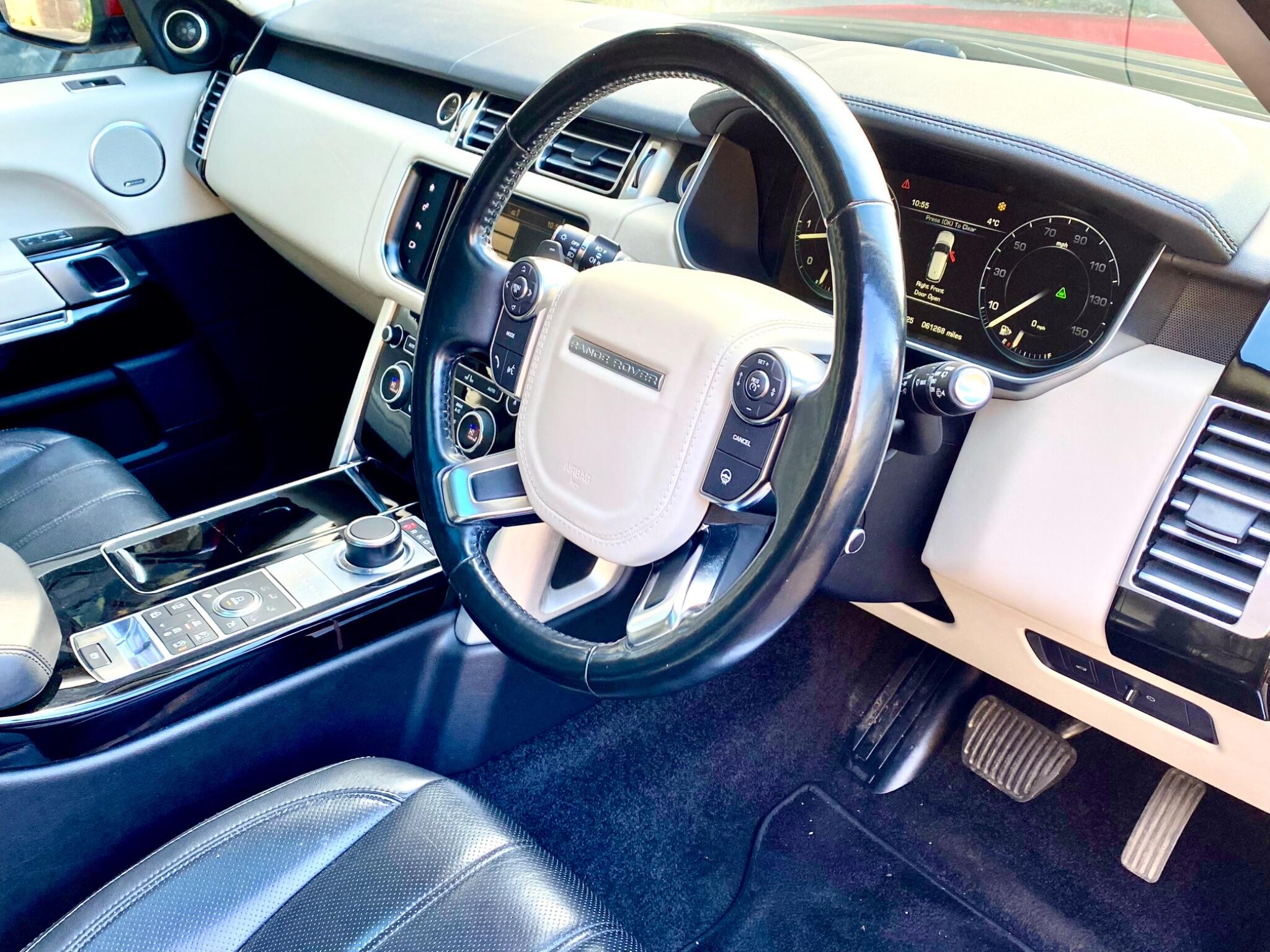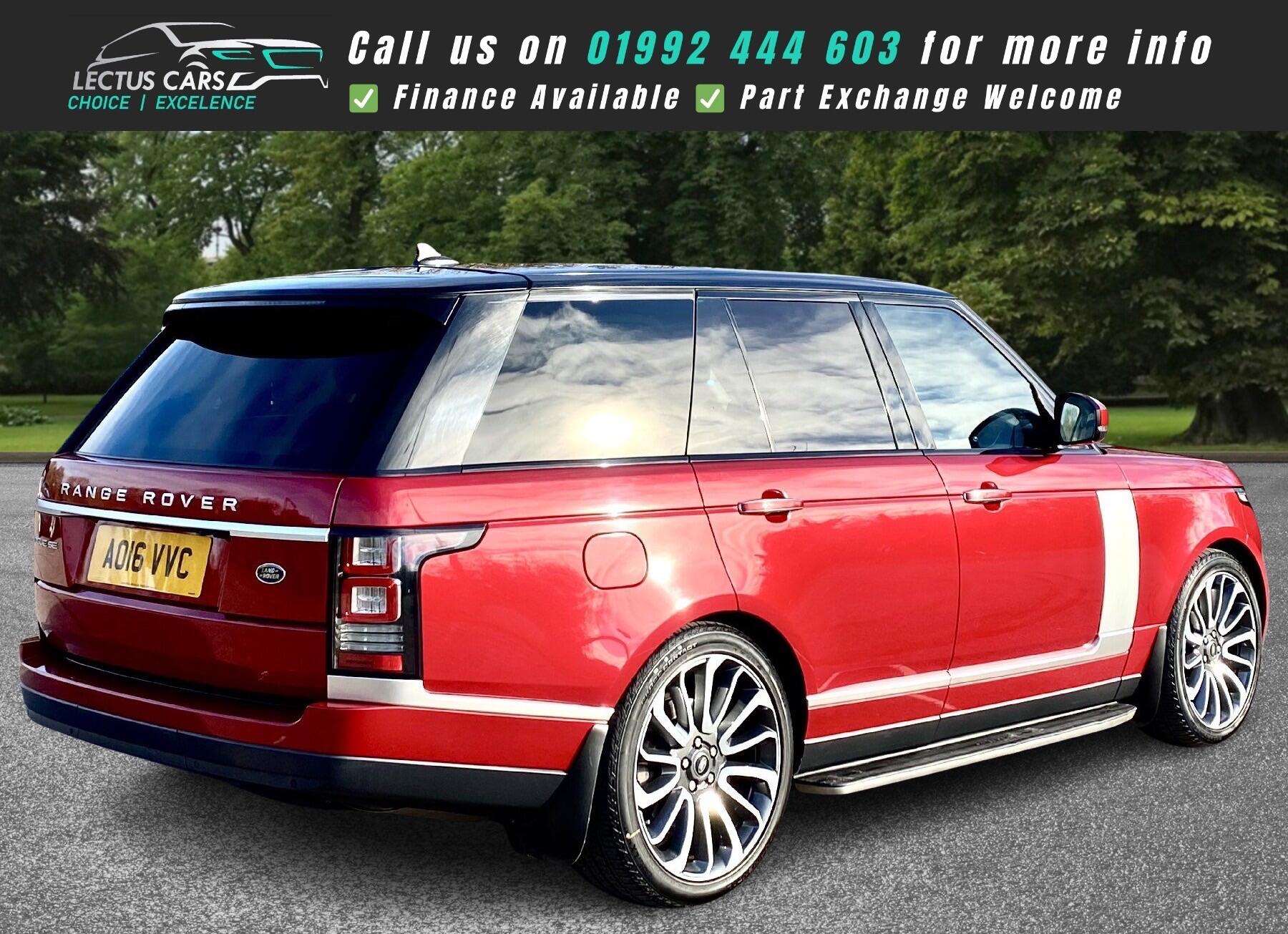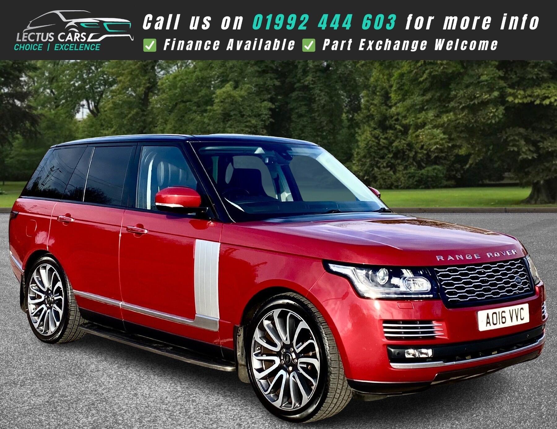 Finished in Firenze Red Metallic with Black leather Upholstery and boasting exceptionally low mileage for its age, this 2016 Land Rover Range Rover TD V6 Vogue SE presents a superb ownership proposition with only two previous keepers and a Full Land Rover Service History. This vehicle was just serviced in October 2025 at 60,460 miles and the Cambelt was replaced in October 2024. Powered by a robust 3.0L Diesel engine and featuring a capable Four Wheel Drive system, this Euro 6 compliant model offers a towing weight of 3500 kg, making it ready for a variety of tasks. The Vogue SE trim level ensures a luxurious experience, enhanced by features such as keyless entry, a heated steering wheel, and a premium 825W Meridian Surround Sound System. Connectivity is also seamless with Bluetooth phone connection, and for practicality, it includes front and rear recovery hooks alongside generous boot space.