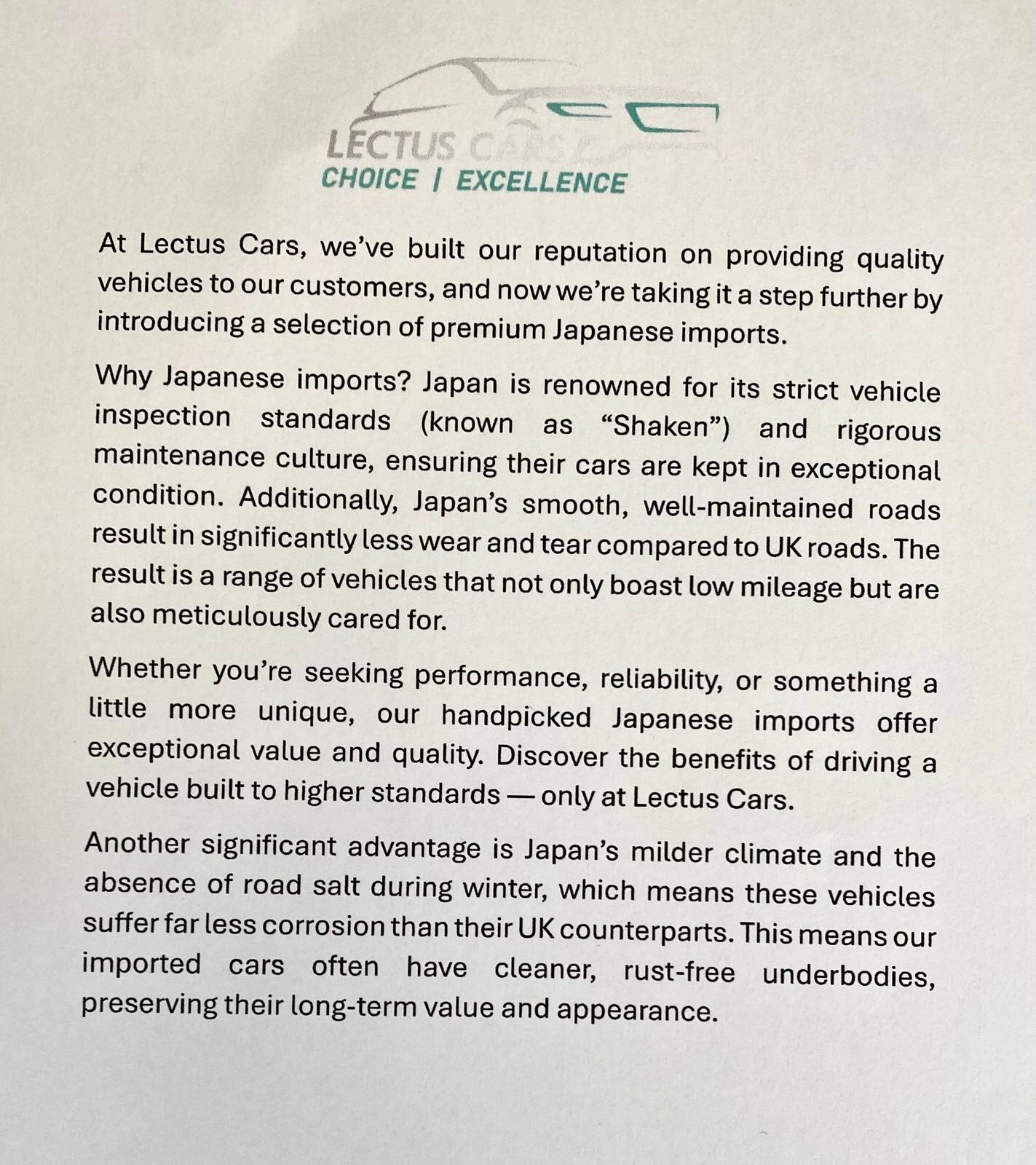 - Japanese Import – unique specification and standout features